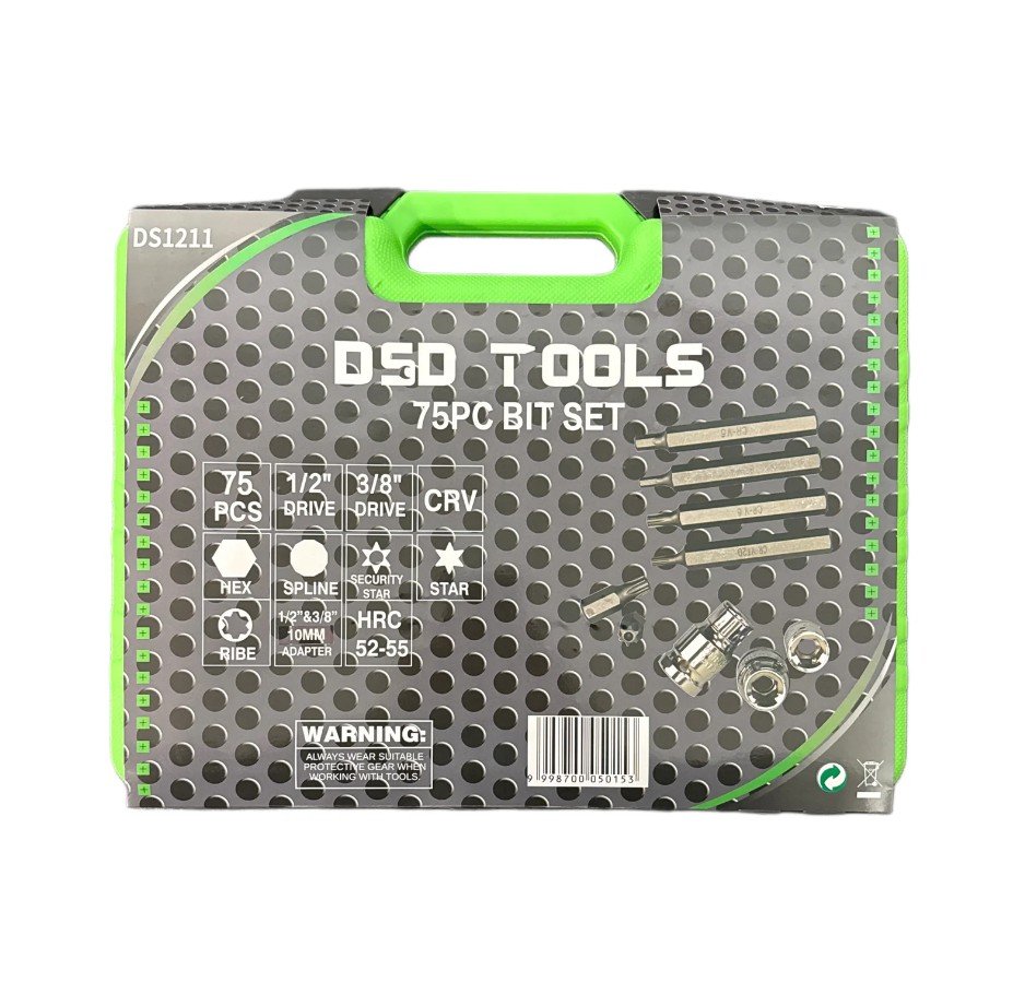 A 75 piece set of popular bit styles in a selection of sizes: