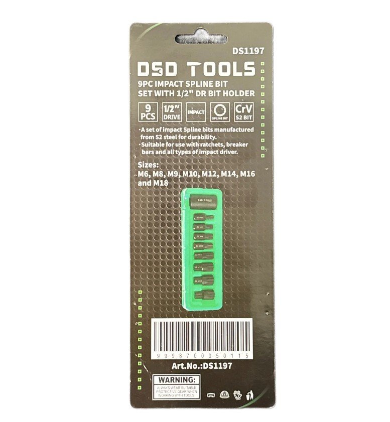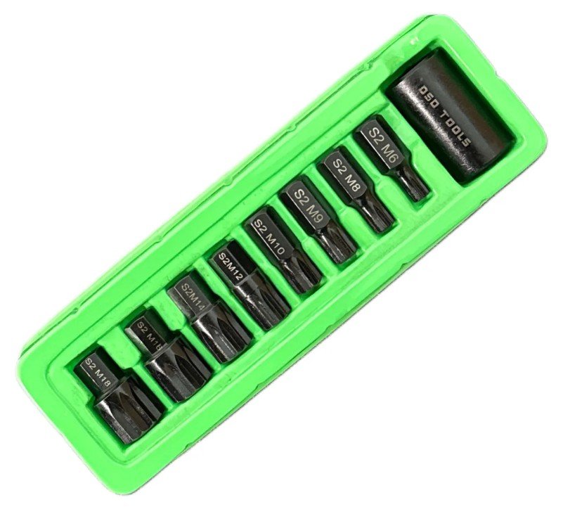 A set of impact Spline bits manufactured from S2 steel for durability.