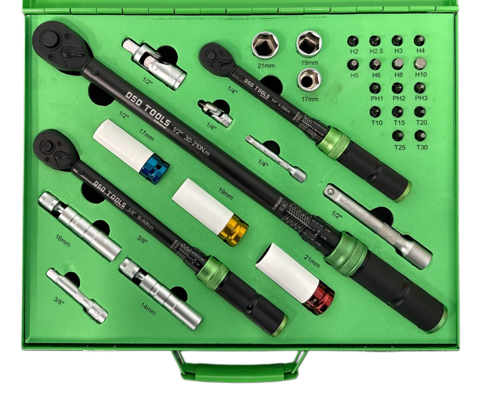 3Pcs Torque Wrench: 1/4″, 5–25N.m 3/8″, 10–60N.m 1/2″, 30–210N.m