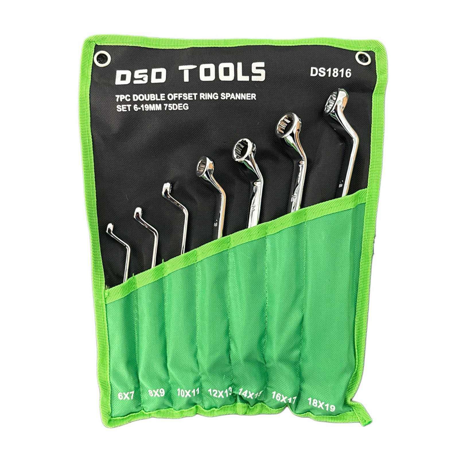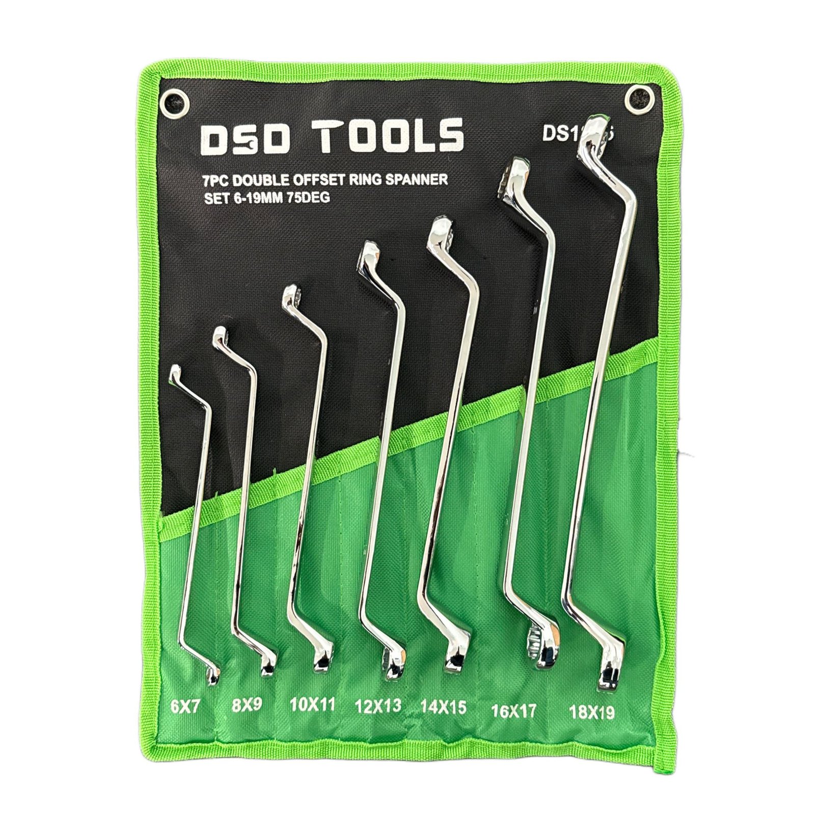 DSD TOOLS 10PC DOUBLE OFFSET RING SPANNER SET 6-27MM 75DEG DS1815