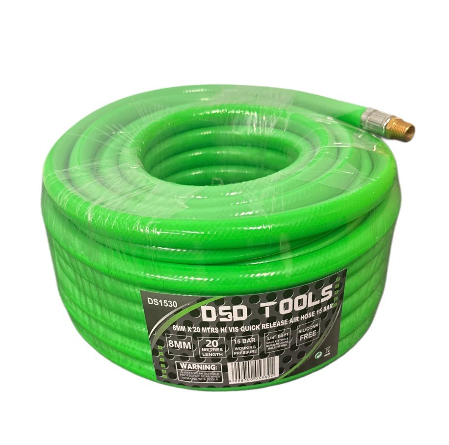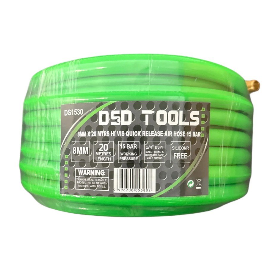 8mm Air Hose with UK quick release male fitting one end and 1/4″ BSPT male fitting the other