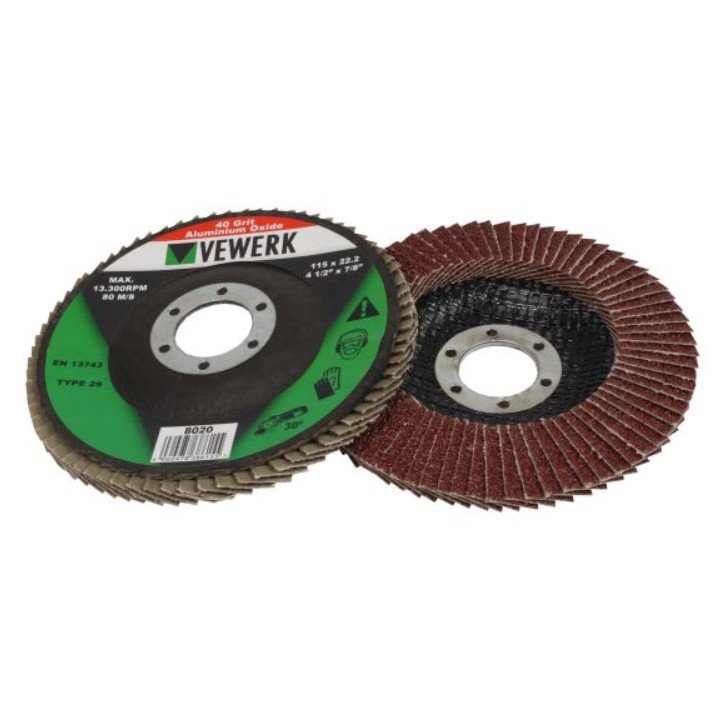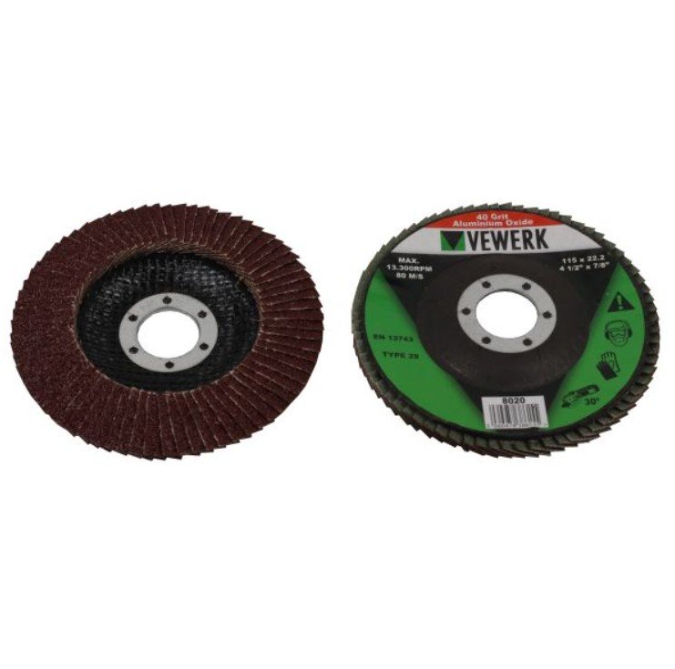 / VEWERK A40T29 FLAP DISCS 40 GRIT OXIDE – PACK 10 (115X22.2) 8020