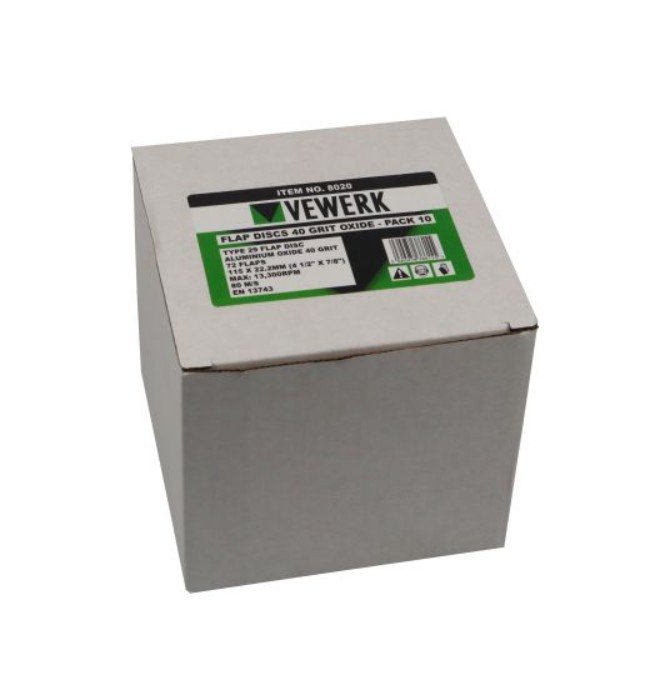 VEWERK A40T29 FLAP DISCS 40 GRIT OXIDE - PACK 10 (115X22.2) 8020 quantity