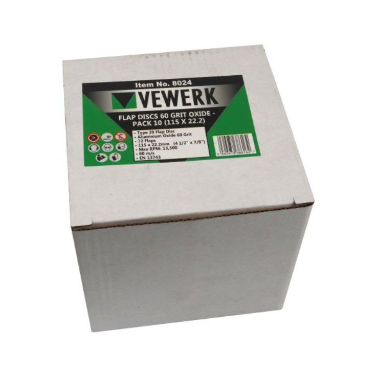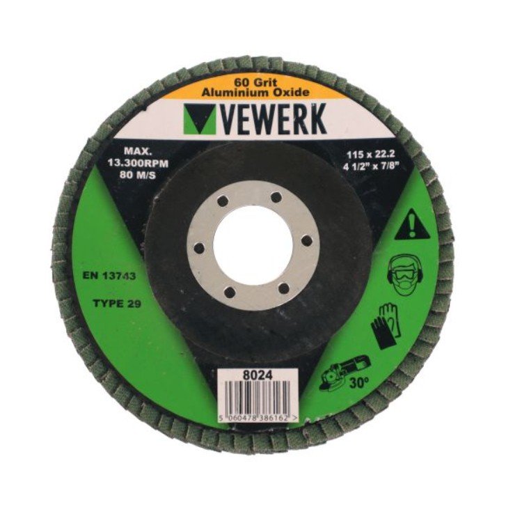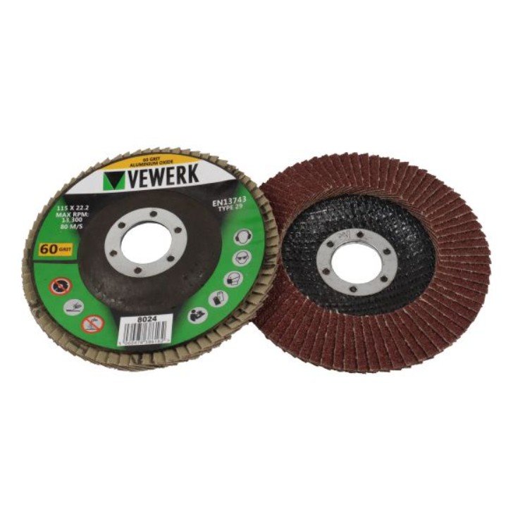 VEWERK FLAP DISCS 60 GRIT OXIDE – PACK 10 (115X22.2) 8024